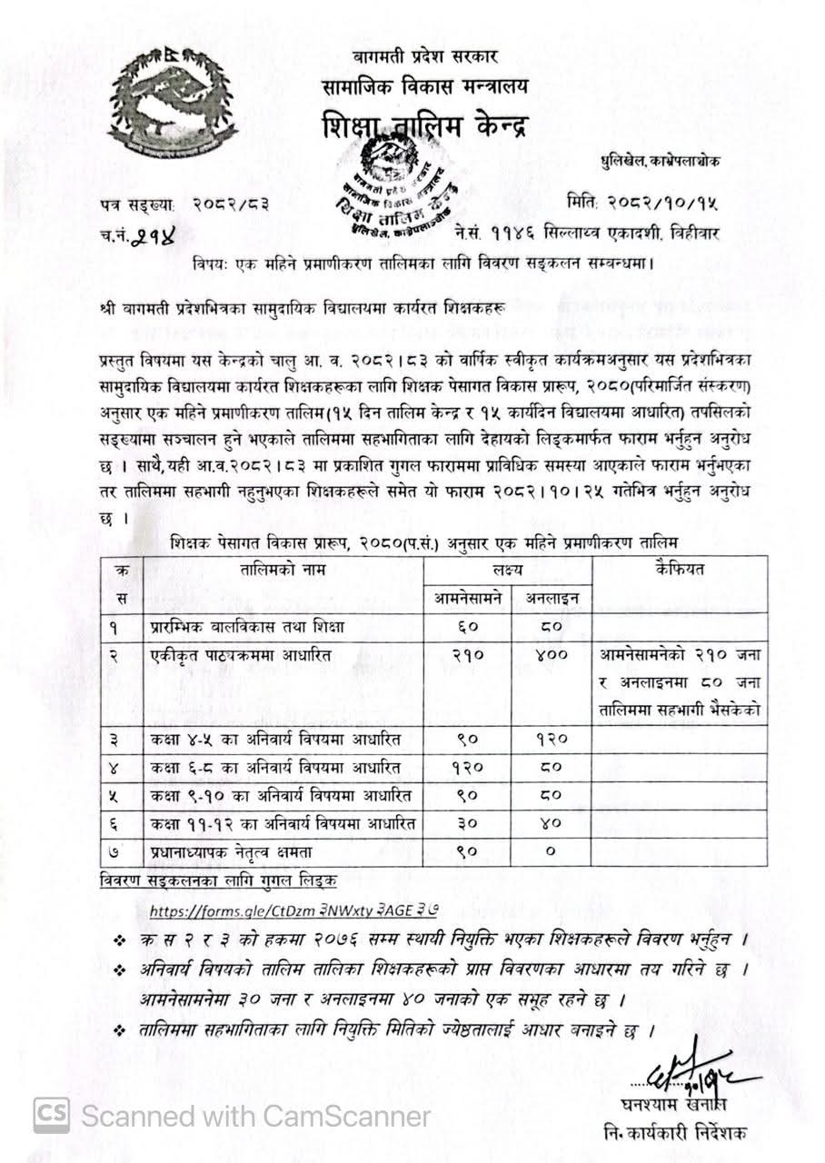 एक महिने प्रमाणीकरण तालिमको फाराम भर्ने सम्वन्धी जरुरी सूचना